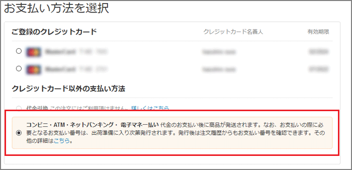 必ず「コンビニ・ATM・ネットバンキング」を選択してください。
